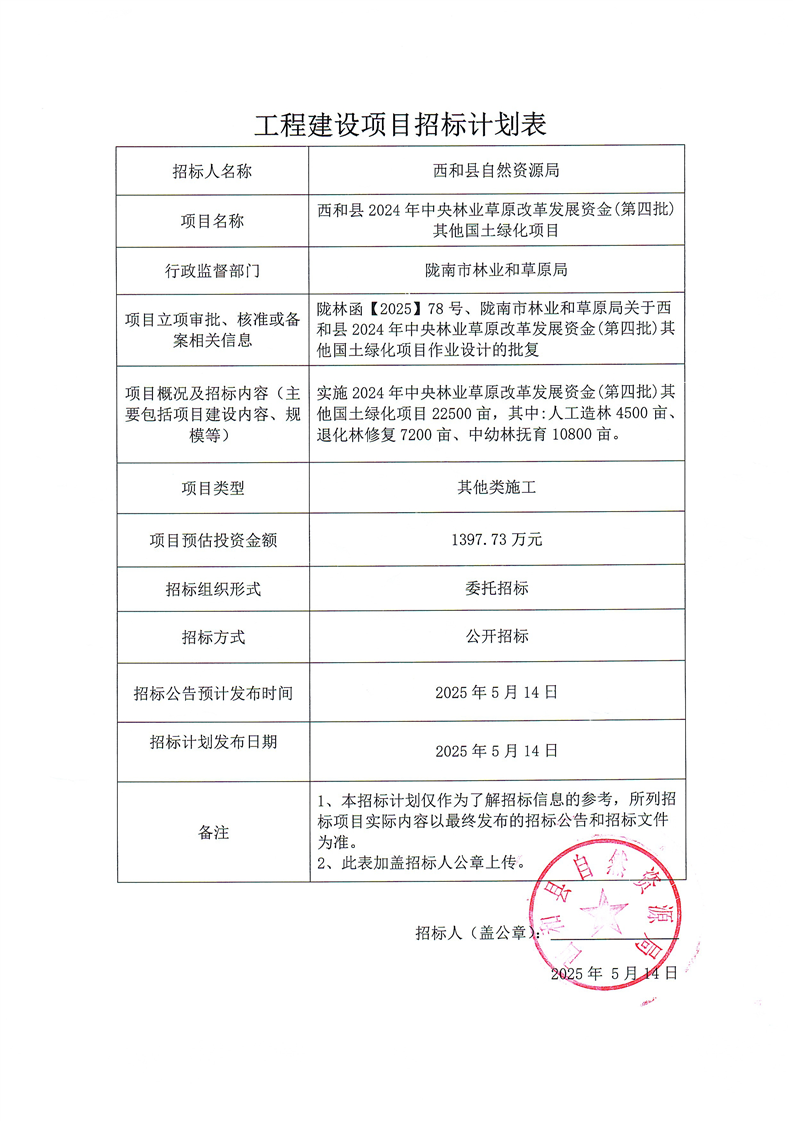 西和縣2024年中央林業(yè)草原改革發(fā)展資金(第四批)其他國土綠化項(xiàng)目