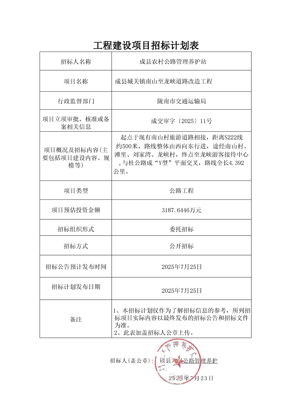 成縣城關(guān)鎮(zhèn)南山至龍峽道路改造工程