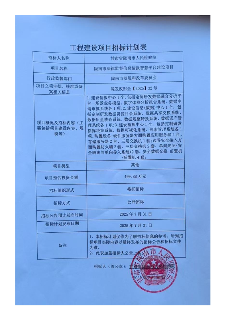 隴南市法律監(jiān)督信息情報智慧平臺建設(shè)項(xiàng)目