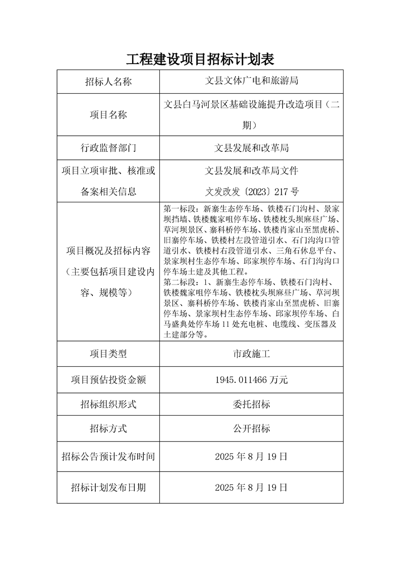 文縣白馬河景區(qū)基礎(chǔ)設(shè)施提升改造項目(二期)