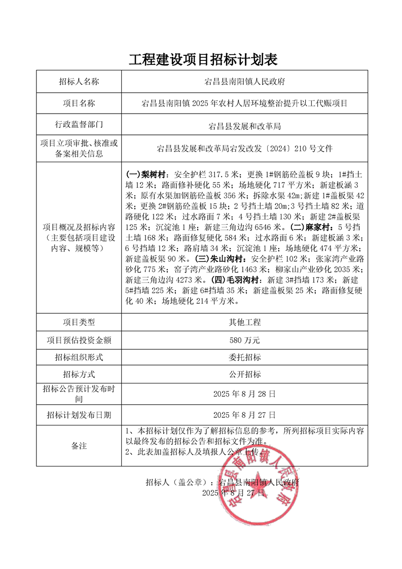 宕昌縣南陽鎮(zhèn)2025年農(nóng)村人居環(huán)境整治提升以工代賑項目