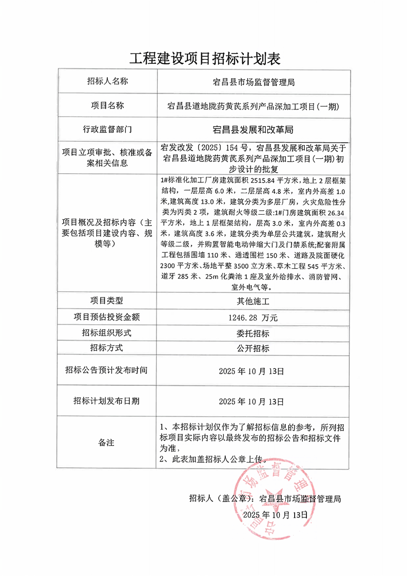 宕昌縣道地隴藥黃芪系列產(chǎn)品深加工項目(一期)