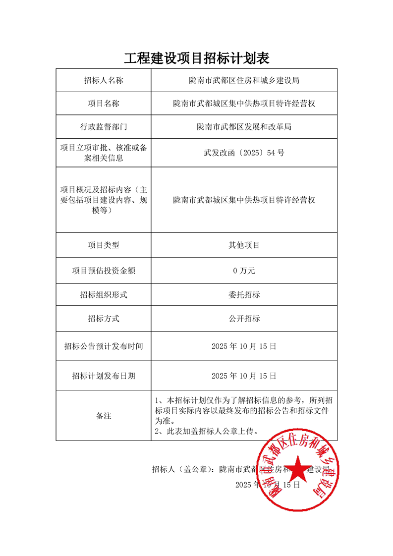 隴南市武都城區(qū)集中供熱項(xiàng)目特許經(jīng)營權(quán)
