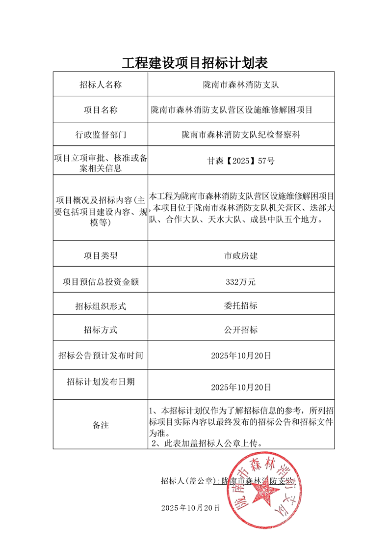 隴南市森林消防支隊營區(qū)設施維修解困項目