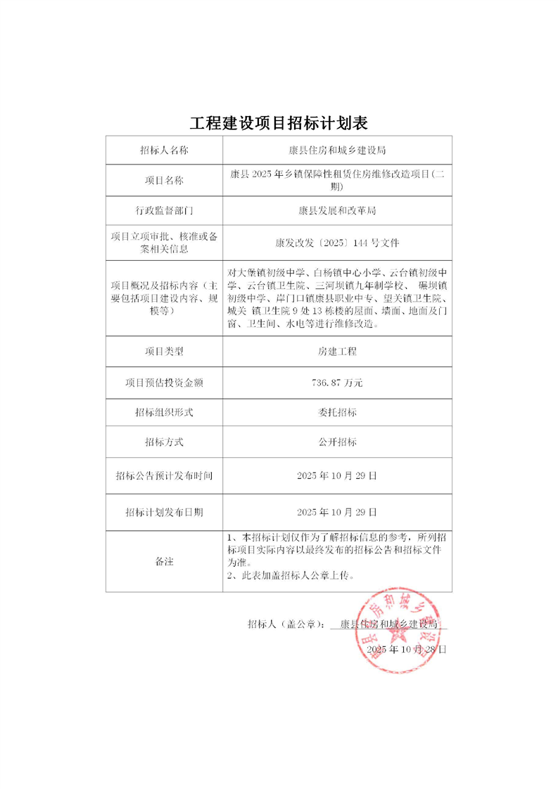 康縣2025年鄉(xiāng)鎮(zhèn)保障性租賃住房維修改造項(xiàng)目(二期)