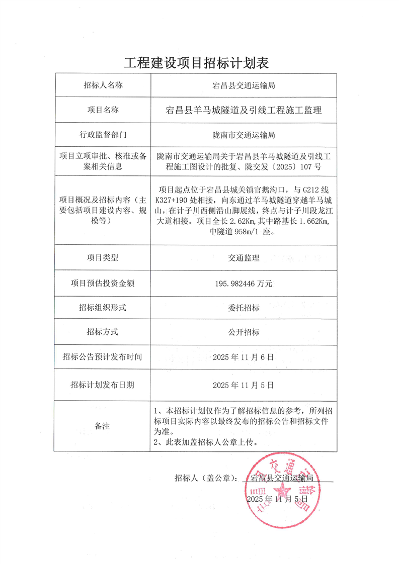 宕昌縣羊馬城隧道及引線工程施工監(jiān)理
