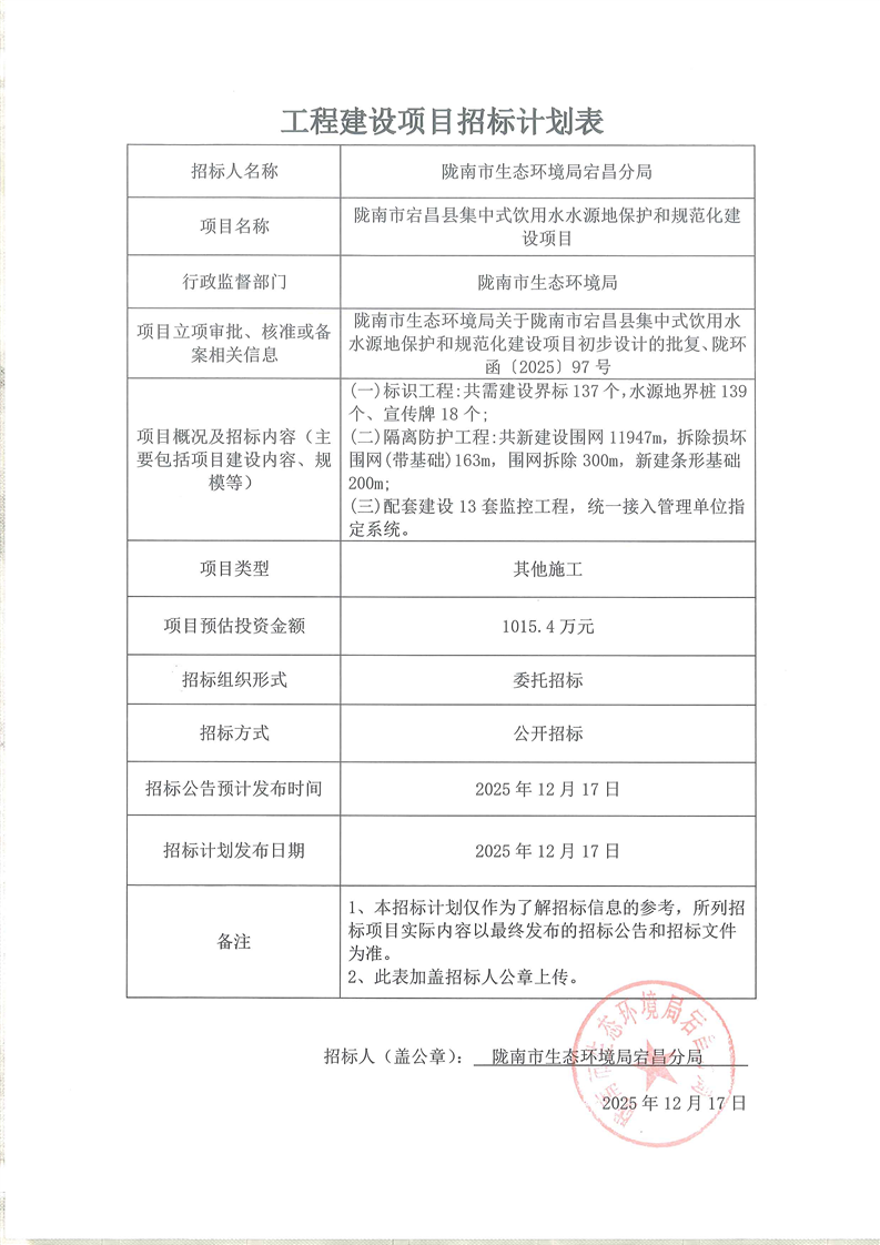 隴南市宕昌縣集中式飲用水水源地保護(hù)和規(guī)范化建設(shè)項目