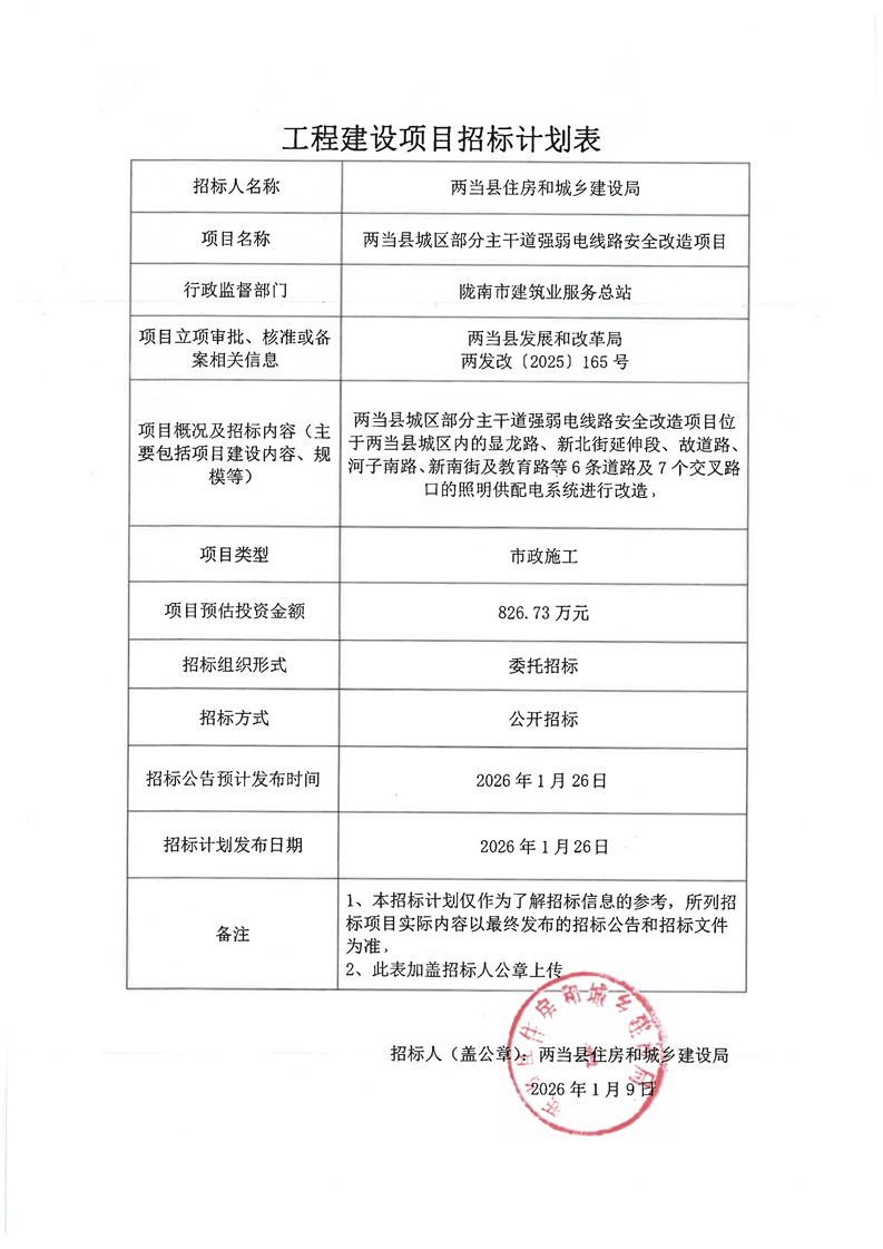 兩當縣城區(qū)部分主干道強弱電線路安全改造項目