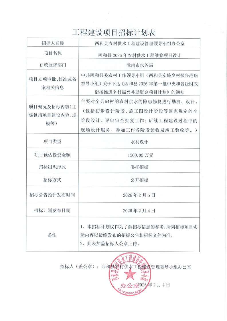 西和縣2026年農(nóng)村供水工程維修項目設(shè)計