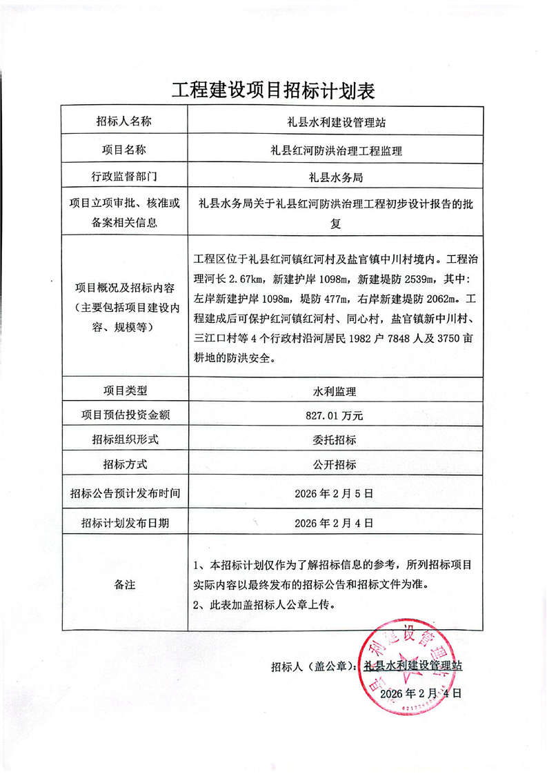 招標計劃表--禮縣紅河防洪治理工程監(jiān)理.pdf