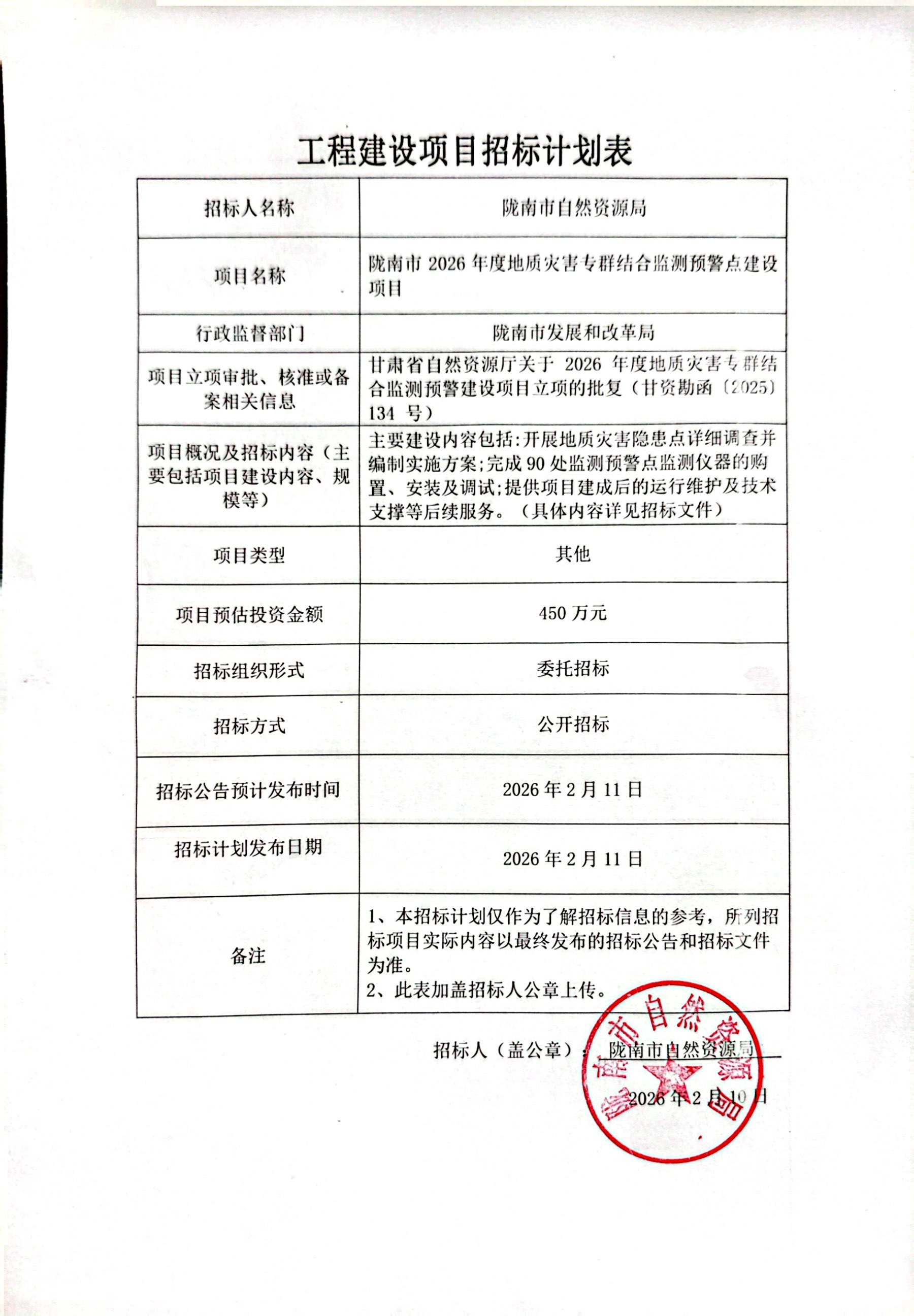 隴南市2026年度地質(zhì)災(zāi)害專群結(jié)合監(jiān)測預(yù)警點(diǎn)建設(shè)項(xiàng)目