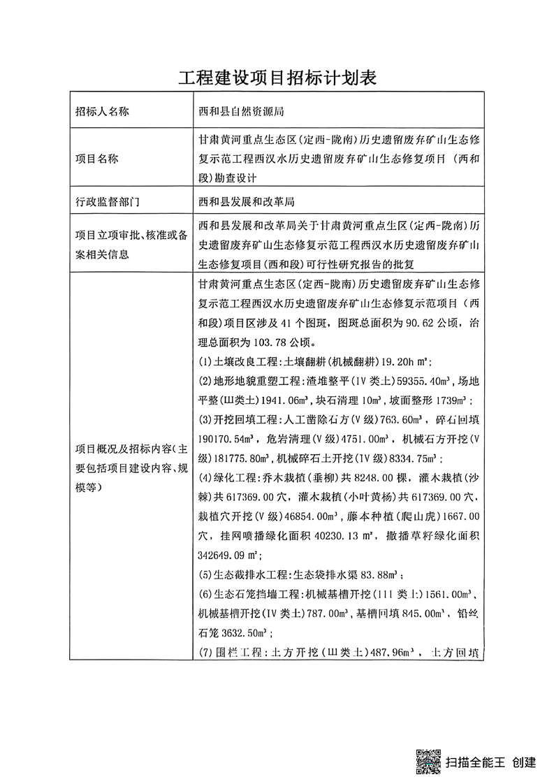 甘肅黃河重點生態(tài)區(qū)(定西-隴南)歷史遺留廢棄礦山生態(tài)修復示范工程西漢水歷史遺留廢棄礦山生態(tài)修復項目 (西和段)勘查設(shè)計