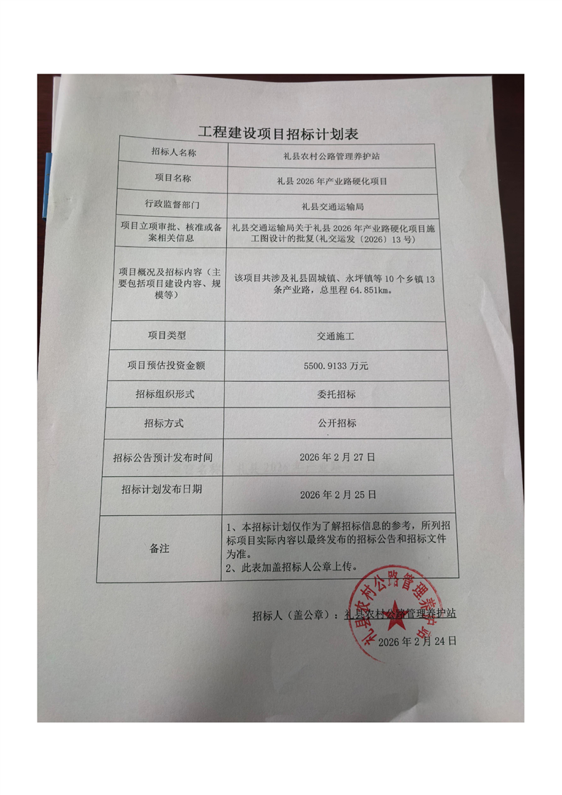 禮縣2026年產(chǎn)業(yè)路硬化項目