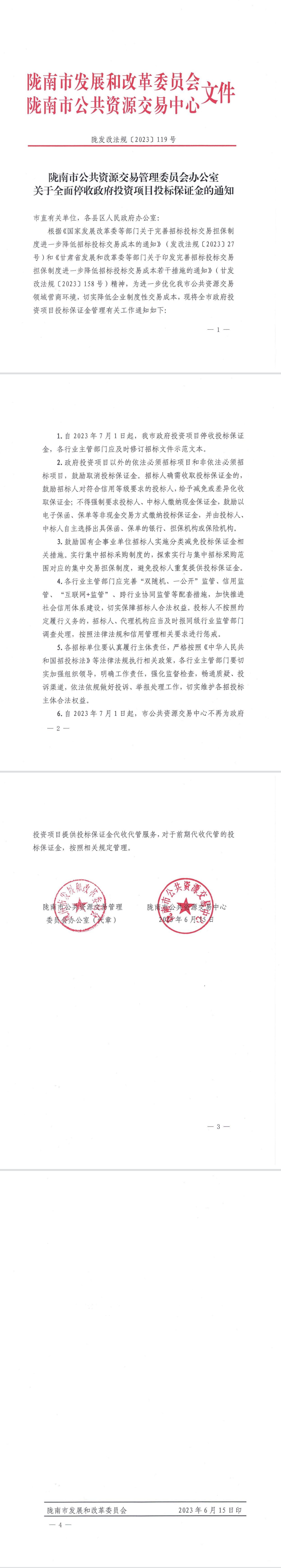 關(guān)于全面停收政府投資項(xiàng)目投標(biāo)保證金的通知