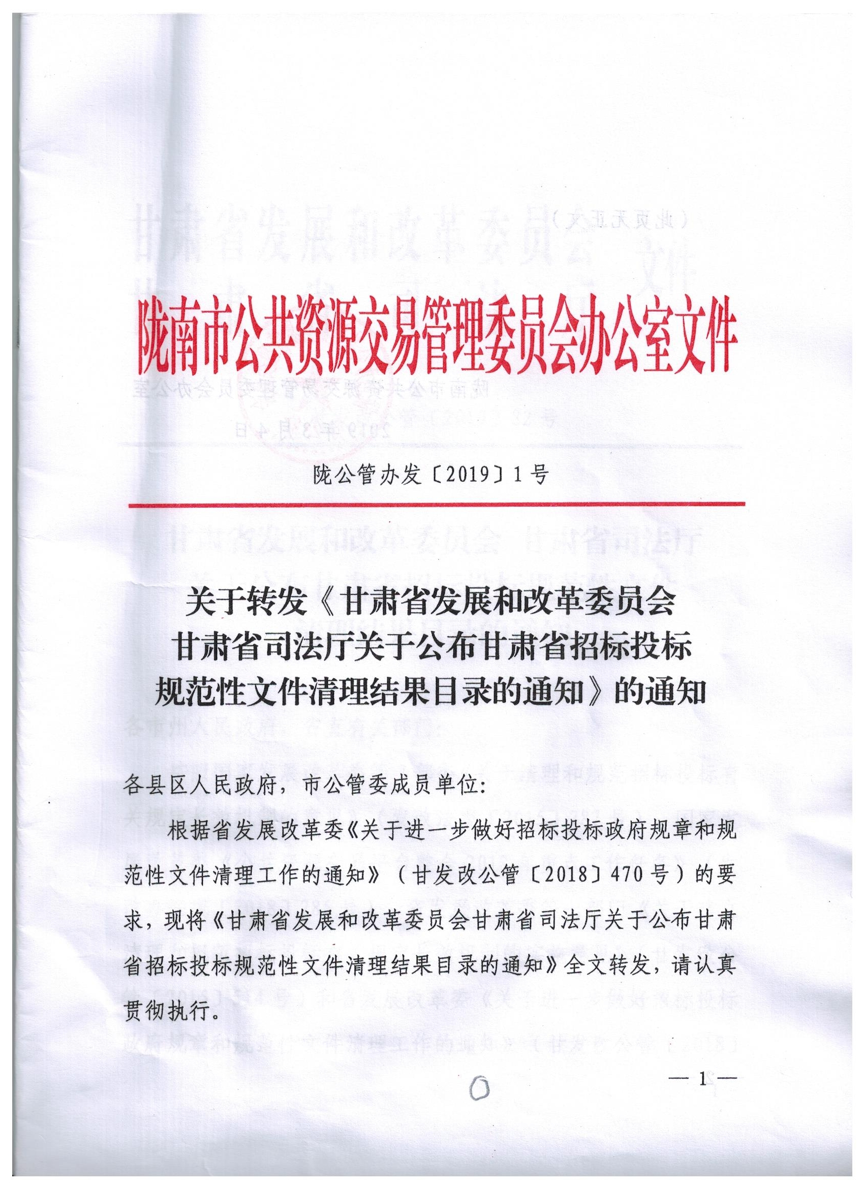 甘肅省發(fā)展和改革委員會 甘肅省司法廳關(guān)于公布甘肅省招標(biāo)投標(biāo)規(guī)范性文件清理結(jié)果目錄的通知